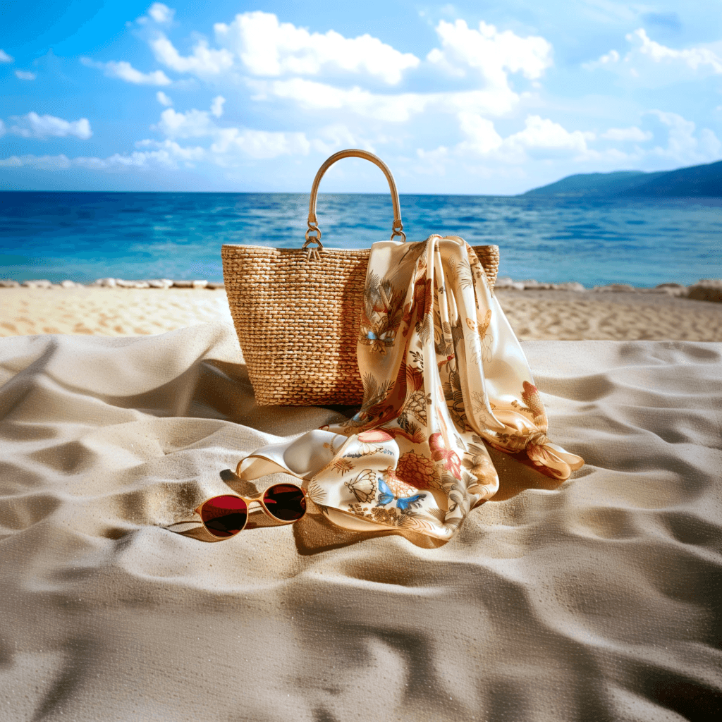 The real joy of the straw and neutral trend that we are seeing on the runways this summer is that they can so easily be complemented by an accessory that does all the work of a fully coloured bag. For instance, this Chloe handbag can take on something as bold as the Weekend MaxMara Uberta Mythological Print Silk Square Scarf with its intricate patterns and striking colours, there’s nothing neutral about this scarf and the Chloe bag is really accentuated by the multi-coloured materials, adding dimension and appeal to what could be a rather dull affair.