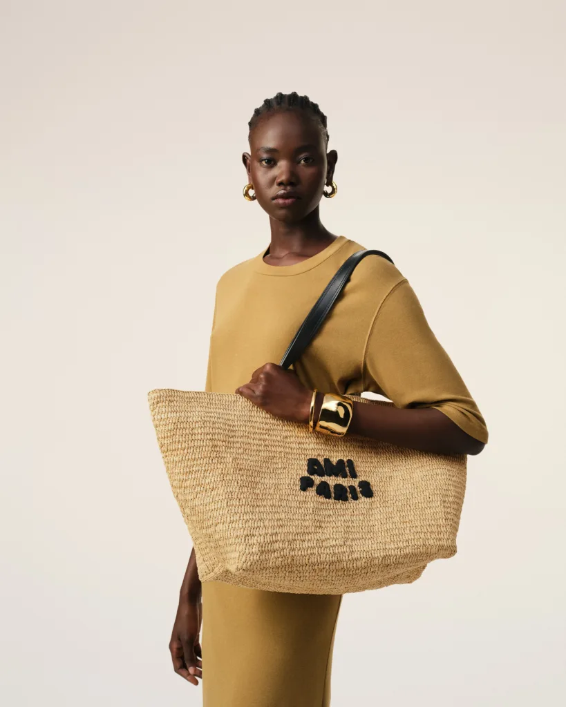 AMI – Beige Leather Rafia AMI Paris Tote Bag –