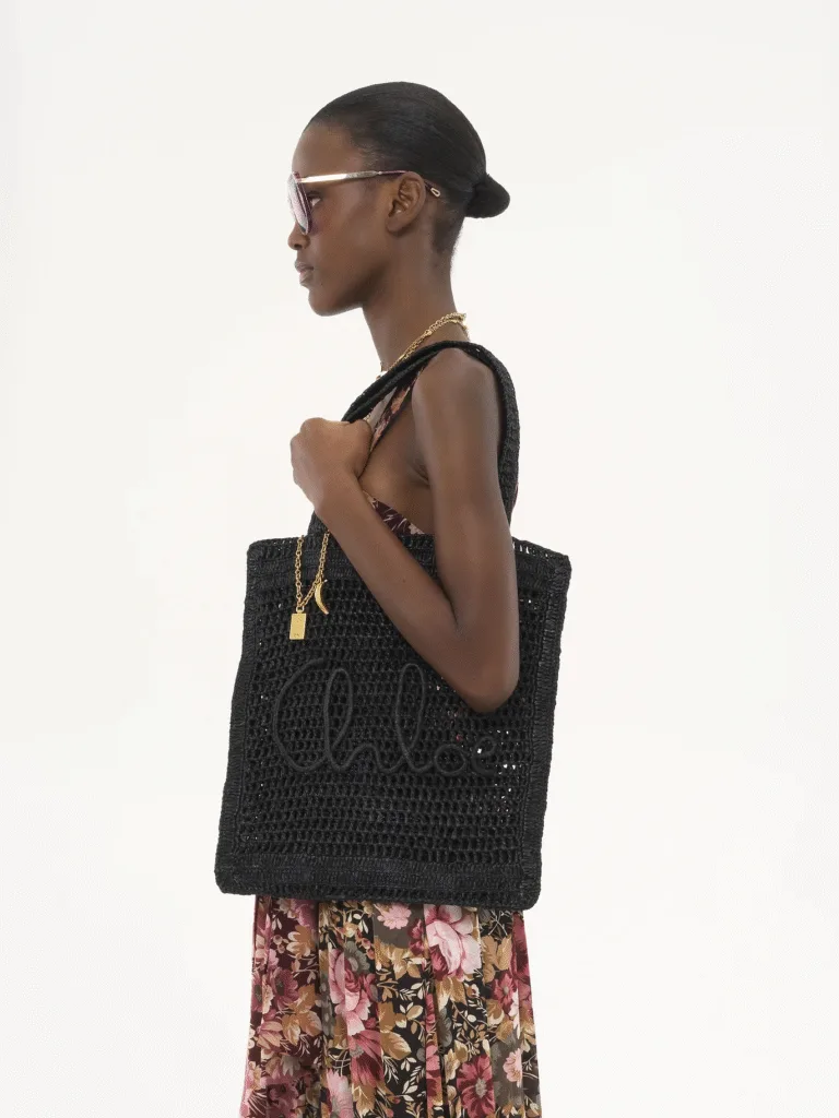 Chloé – Summer Banana Black Raffia Tote Bag
