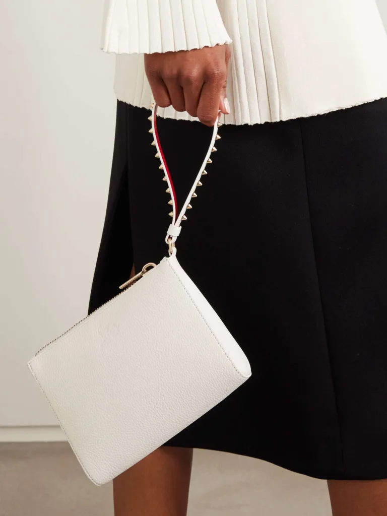 Christian Louboutin – Cabata White Leather Studded Clutch –