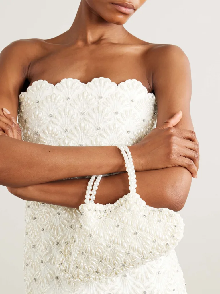 Clio Peppiatt – Ivory Scallop Embellished Tulle Tote