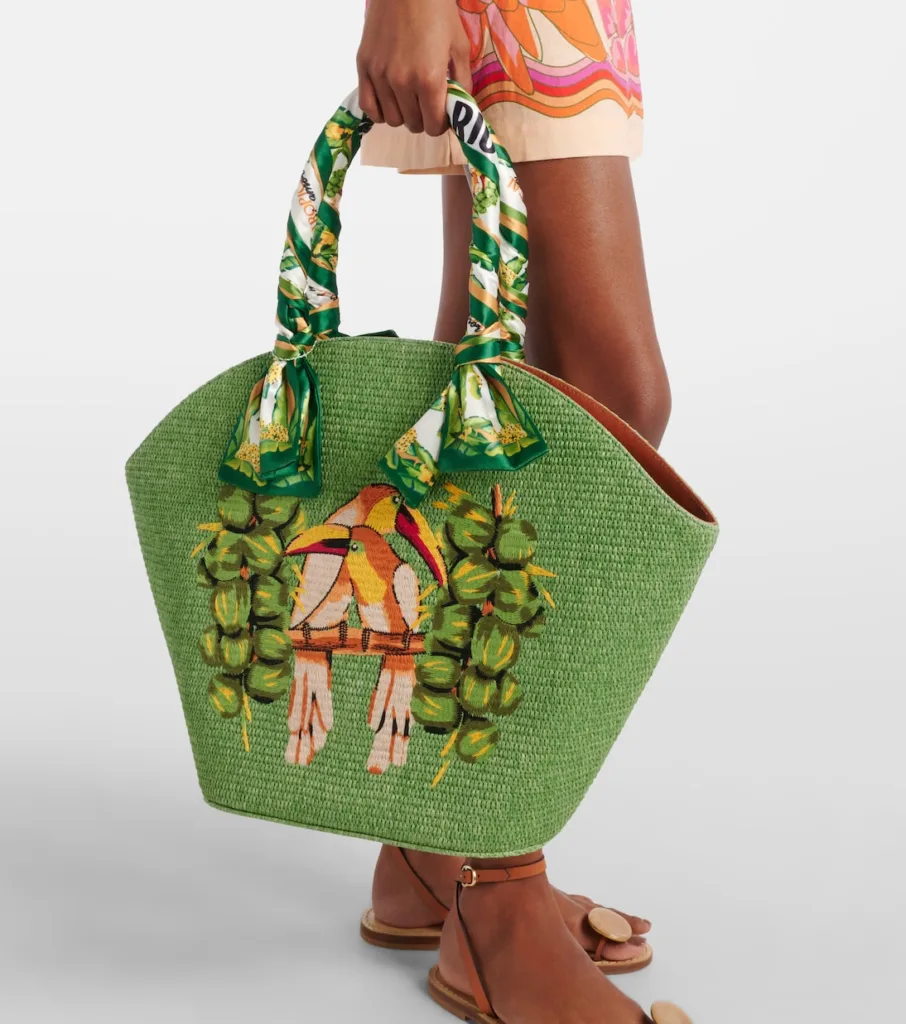 Farm Rio – Scarf-Detail Printed Toucan Green Basket Bag –