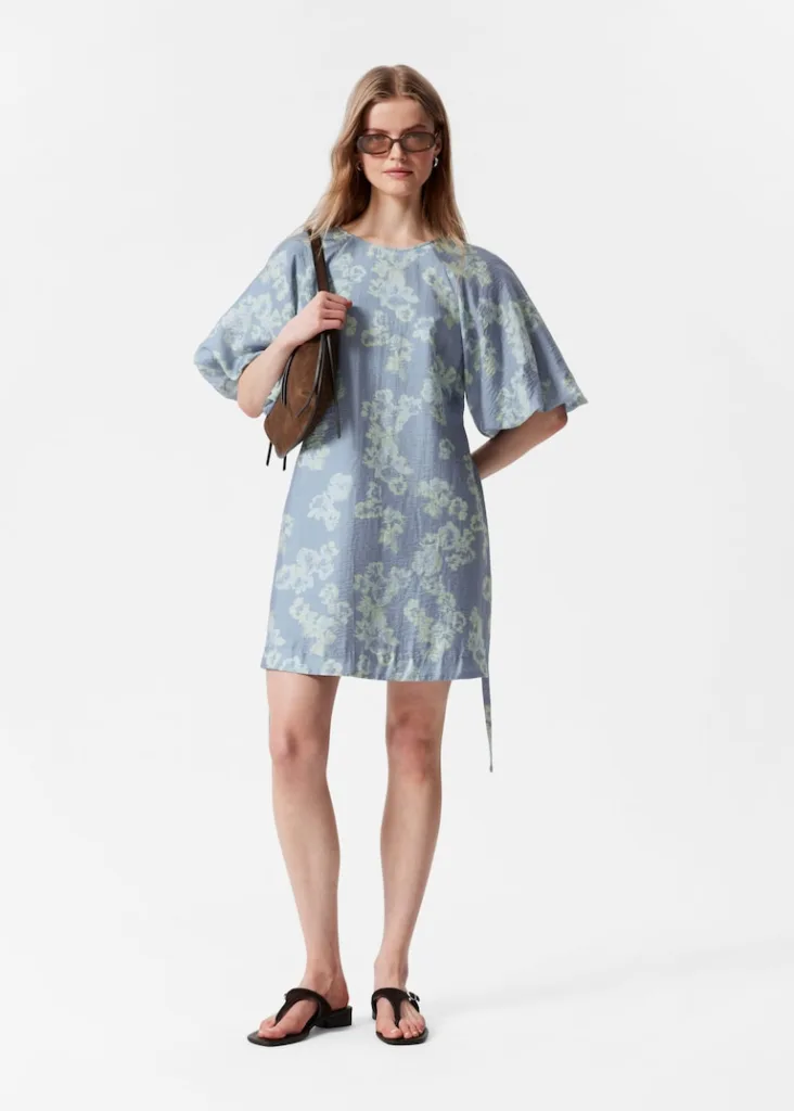 & Other Stories – Puff Sleeve Blue Floral Mini Dress –
