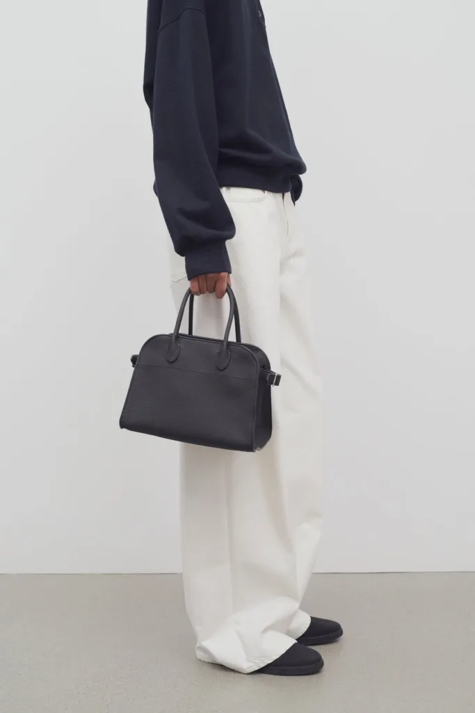 The Row – Soft Margaux 10 Black Leather Top Handle Bag
