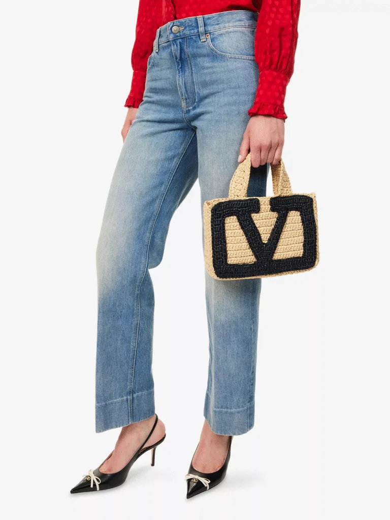 Valentino Garavani – Viva Superstar Small Naturale and Black Raffia Tote Bag